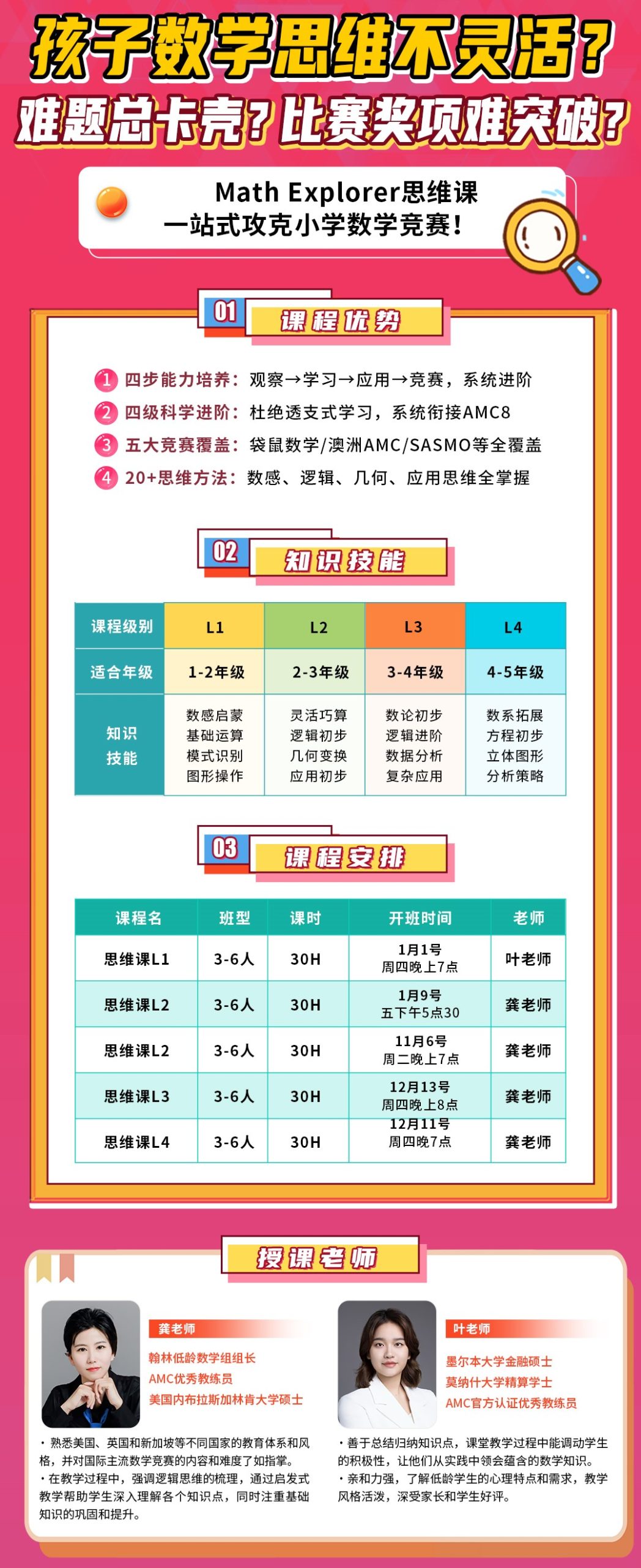 精英师资:我们拥有一支高素质、经验丰富的师资团队,他们不仅擅长数学教学,还具备丰富的竞赛经验,能够为学生提供个性化的指导和辅导。
