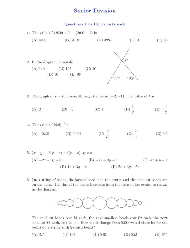 2009赛季澳洲AMC数学竞赛E等级真题及答案