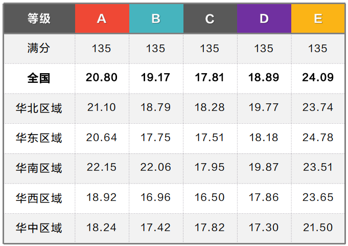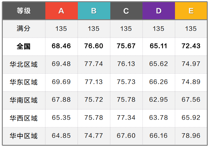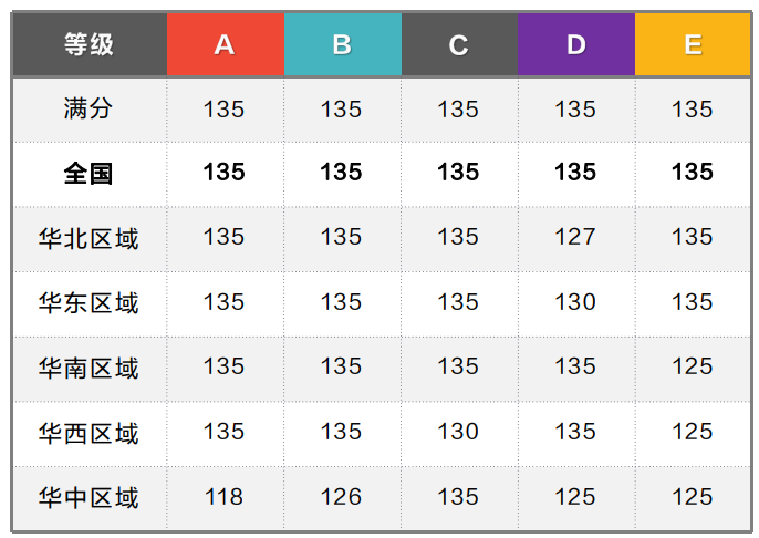 Level A-E 分数线分数线分布情况