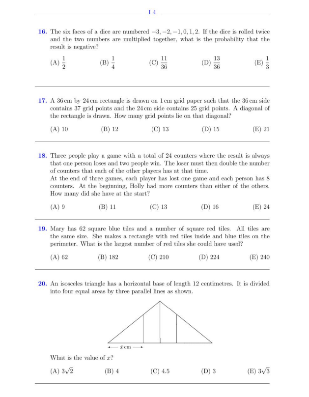 2011赛季澳洲AMC数学竞赛D等级真题及答案